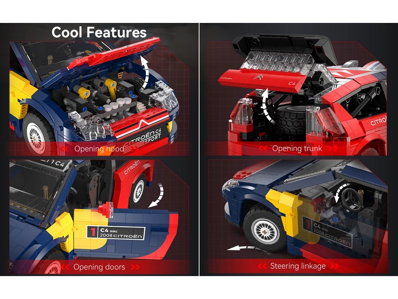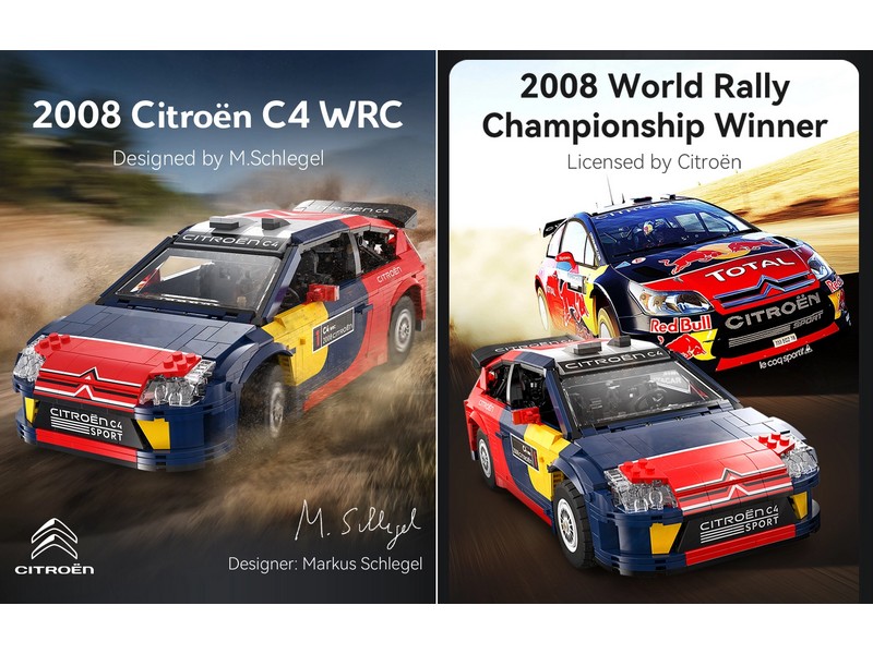 Конструктор от CADA для постройки раллийного автомобиля 2008 Citroen C4 WRC в масштабе 1/12. C62005W — реплика победителя чемпионата мира по ралли Citroen C4 WRC 2008, созданную талантливым мастером Markus Schlegel.