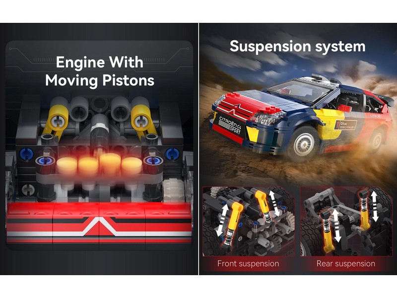 Эта впечатляющая модель может похвастаться множеством функций, включая опциональную моторизацию. Погрузитесь в настоящий реализм, наблюдая за движением поршней двигателя и полностью функциональную переднюю и заднюю подвеску. Исследуйте сложный интерьер, открыв двери, и откройте для себя удобство запасного колеса в багажнике, идеально подходящего для любых неожиданных проблем с шинами во время вашего следующего чемпионата мира по ралли.