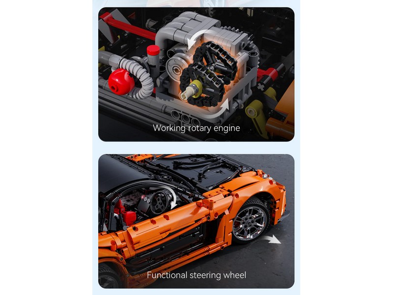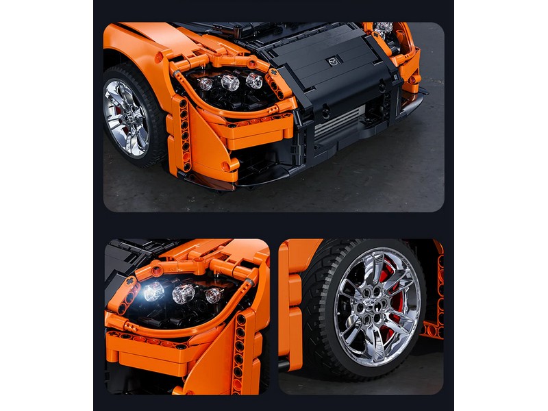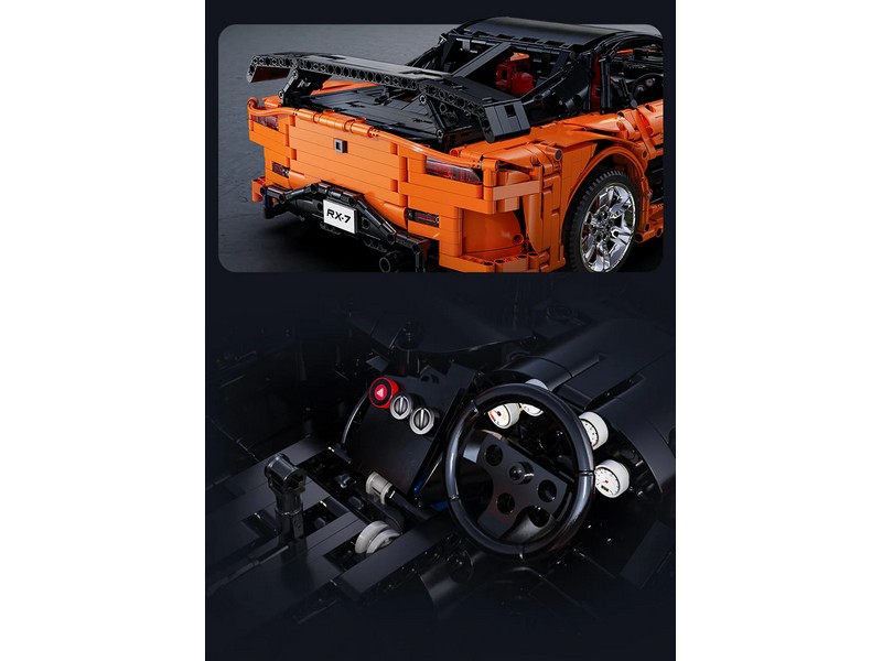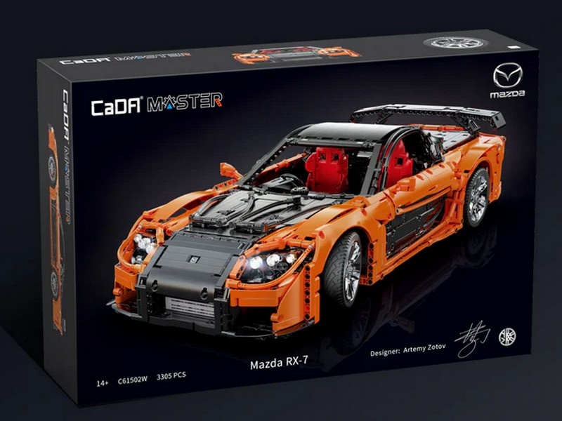 Радиоуправляемый конструктор от CADA представляет собой набор для постройки спортивного автомобиля спорткар Mazda RX-7 из 3305 деталей. Детализованный интерьер с сиденьями, панелью управления и рулем. Открываются двери, капот и багажник. Имеется светодиодная подсветка фар.