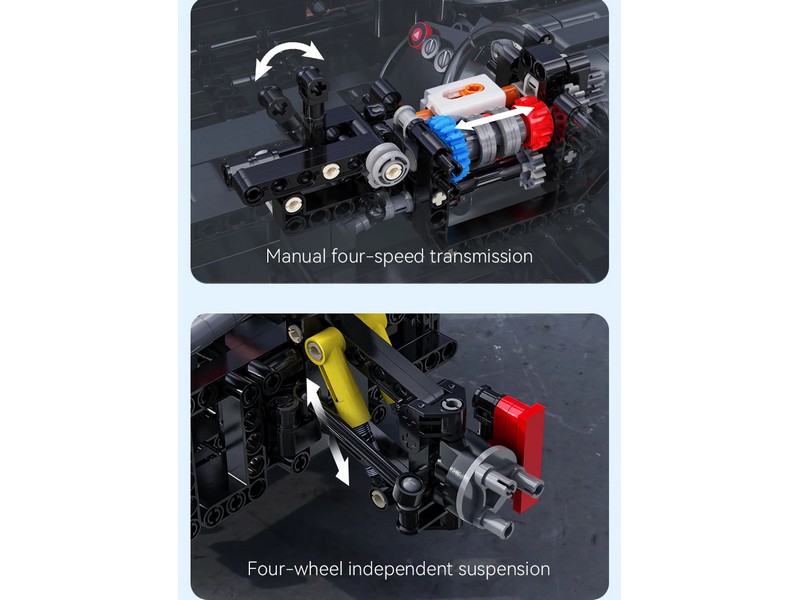 Эта культовая оранжевая модель CaDA C61502W предназначена не только для показа; она полностью моторизована, что позволяет управлять ею с помощью пульта радиоуправления. Созданная с тщательным вниманием к деталям, RX-7 оснащена копией двигателя Mazda, что придает аутентичность конструкции. Механическая четырехступенчатая коробка передач позволяет переключать передачи, что повышает реализм и функциональность модели.