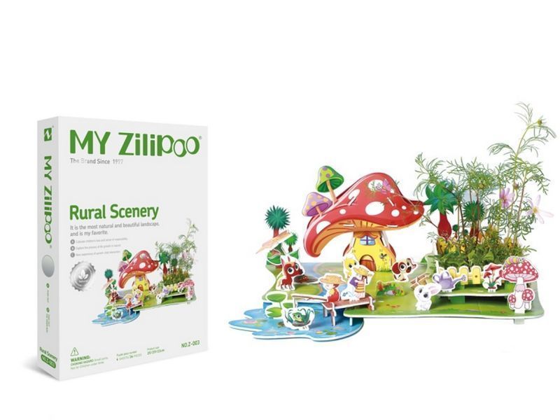 Из деталей 3Д пазла "Сельский пейзаж" позволит воссоздать настоящую атмосферу загородной жизни. Центр композиции - уютный дом-гриб, двери которого открыты для всех желающих. Дом располагается на берегу пруда. С моста ранним ясным утром можно ловить рыбу.