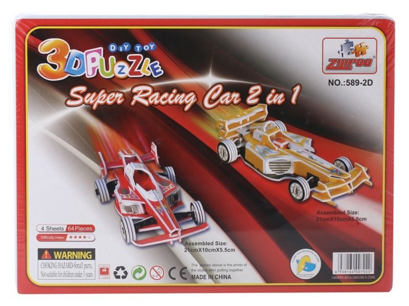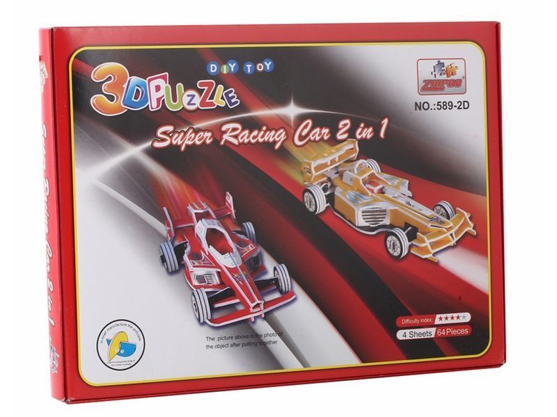 3D пазлы из пенокартона СУПЕРГОНОЧНЫЙ АВТОМОБИЛЬ 2 в 1 (64 детали)