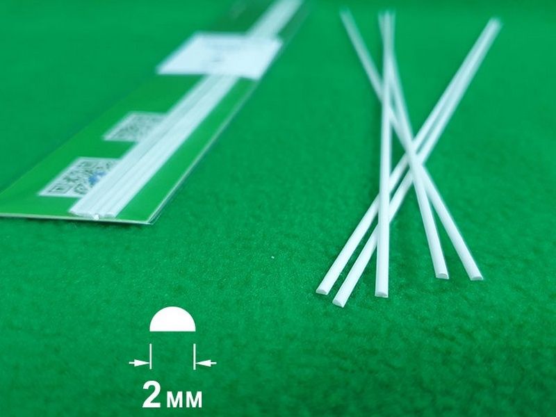 ABS пластик полукруг 2 мм , длина 250 мм, 5 шт