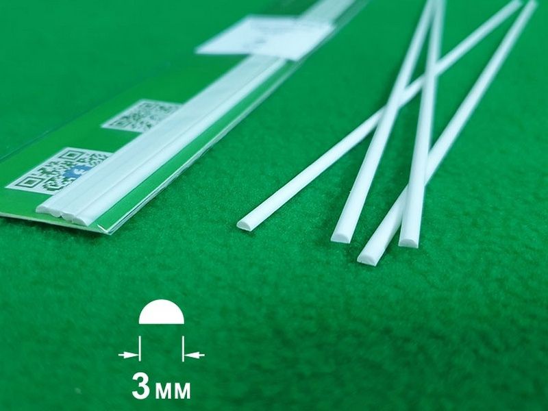 ABS пластик полукруг 3 мм , длина 250 мм, 4 шт