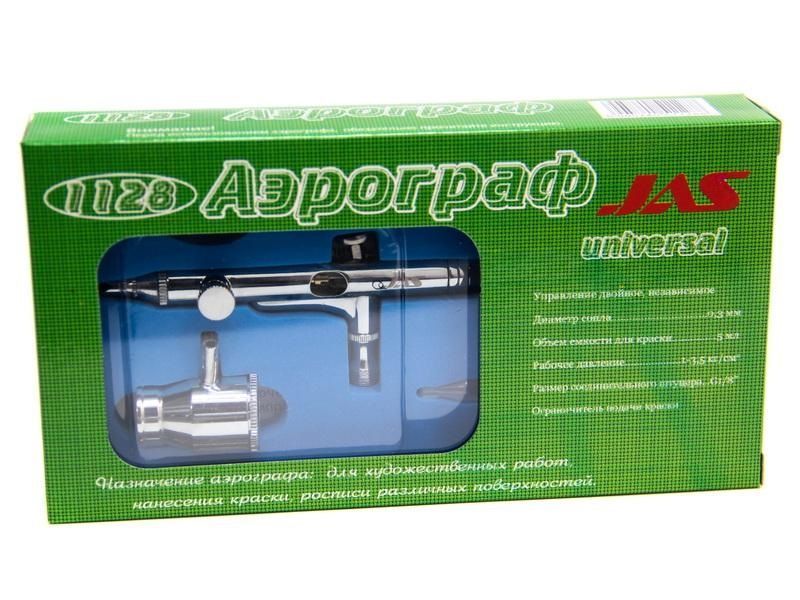 Аэрограф универсального применения (продолжение линейки аэрографа JAS 1117). Способ крепления емкости позволяет красить с любым углом наклона аэрографа, а также устанавливать емкость слева и справа.