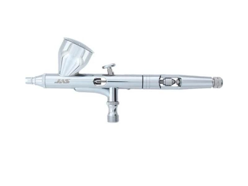 Та же самая модель аэрографа, что и JAS 1117. Отличие - нет узла Air Control - тонкой регулировки подачи воздуха на самом аэрографе. Плюс этой модели - большая надежность работы за счет уменьшения подвижных деталей, прокладок, регулировок. Минус - в некоторых случаях (например, для рисования тонких линий) Air Control бывает полезен.