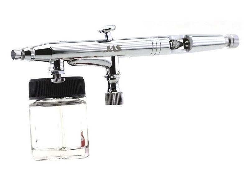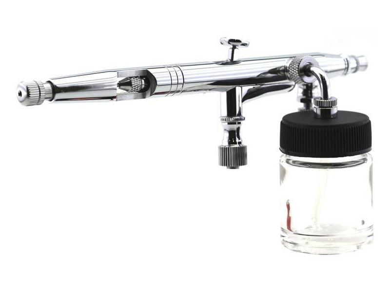 В аэрографе установлено сопло 0.3 мм, толщина линий от 1 мм до 30 мм. Возможна установка сопла 0,2 мм для получения более узкого факела распыла, линии от 0, 5 мм. Также можно поставить более широкое сопло 0.5 мм, для получения более широко распыла, линии до 5 см шириной.