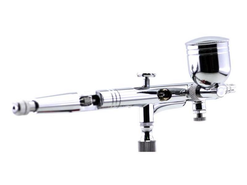 Прокладка иглы тефлоновая (не боится растворителей). Бачок для краски объемом 7 мл. Наличие регулятора Air Control позволяет дополнительно тонко настраивать подачу воздуха и ширину линии рисования.