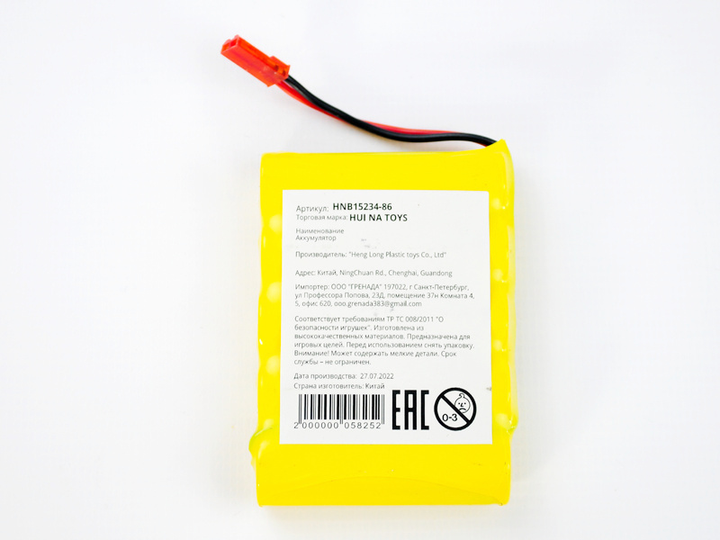 Аккумуляторная батарея Huina Ni-Cd 400mAh 4.8V для радиоуправляемого бульдозера Huina HN1520, радиоуправляемого экскаватора Huina HN1530, радиоуправляемого карьерного самосвала HN1540 и радиоуправляемого снегоуборщика HN1586.
