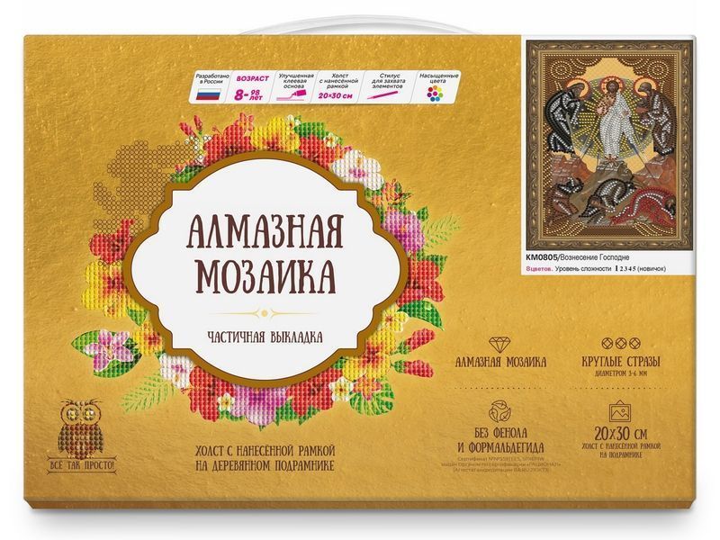С помощью набора для творчества из мозаичных элементов можно выложить из мозаики икону "Вознесение Господне".