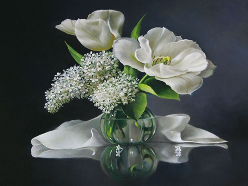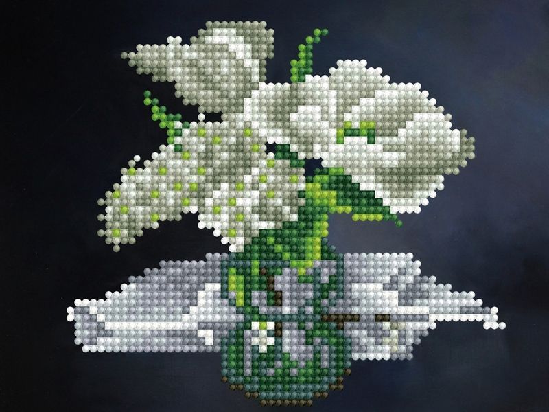 Алмазная мозаика 15х20 БЕЛЫЙ БУКЕТ (16 цветов)