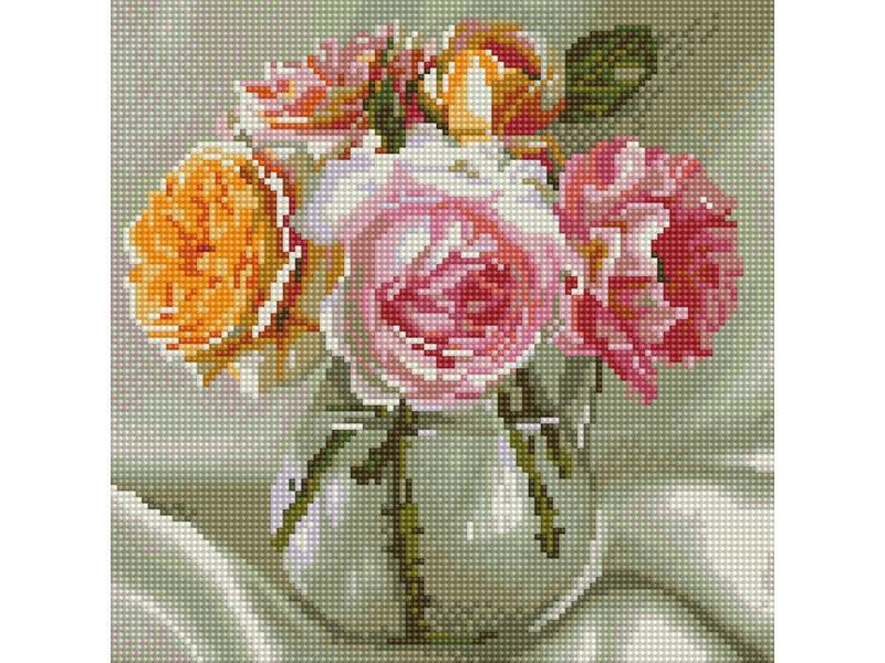 Алмазная мозаика 30х30 БУЗИН. БУКЕТ ИЗ РОЗ (26 цветов)