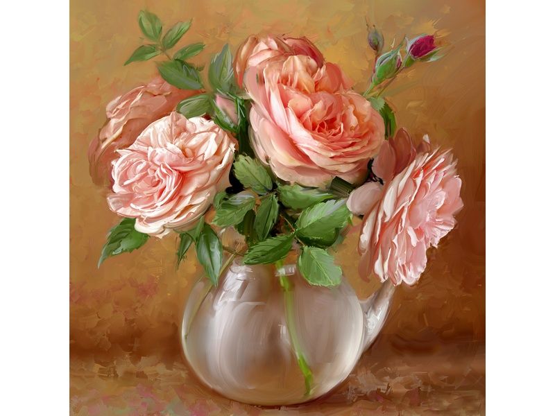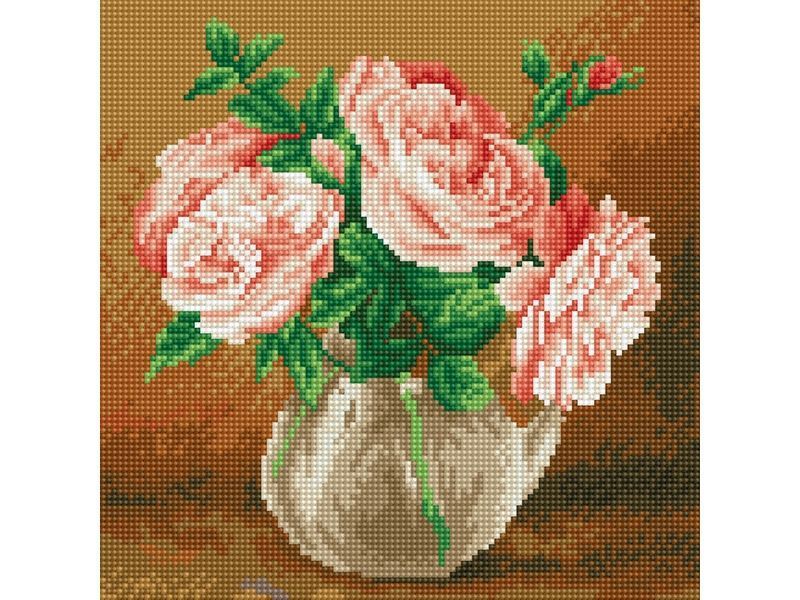 В наборе "Случайный букет" из мозаичных элементов можно выложить картину Игоря Бузина с изображением букета розовых роз в белой вазе.