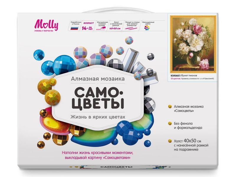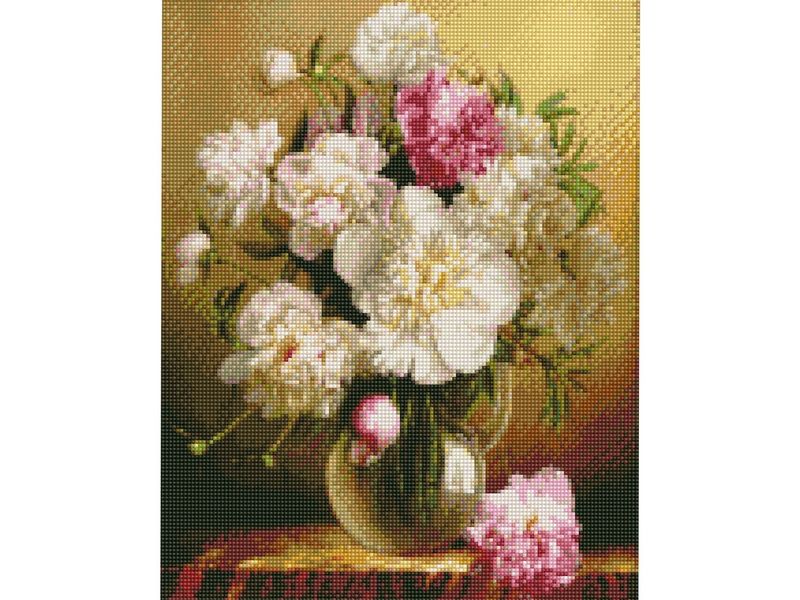 Алмазная мозаика с нанесенной рамкой 40х50 БУКЕТ ПИОНОВ (35 цветов)