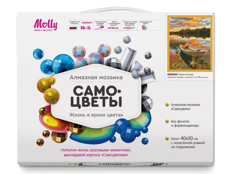 Алмазная мозаика с нанесенной рамкой 40х50 ЛОДКА НА ОЗЕРЕ (36 цветов)