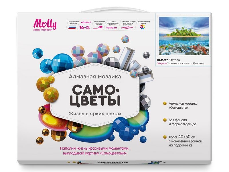 Алмазная мозаика с нанесенной рамкой 40х50 ОСТРОВ (34 цвета)