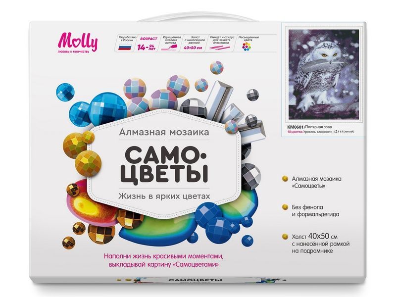 В наборе "Полярная сова" из мозаичных элементов можно выложить полярную сову на ветке в зимнюю ночь. Полярная сова получила прозвище от якутов: "снежная бабушка", поскольку при взгляде на нее со стороны она напоминает старушку, укутанную в пуховый платок.