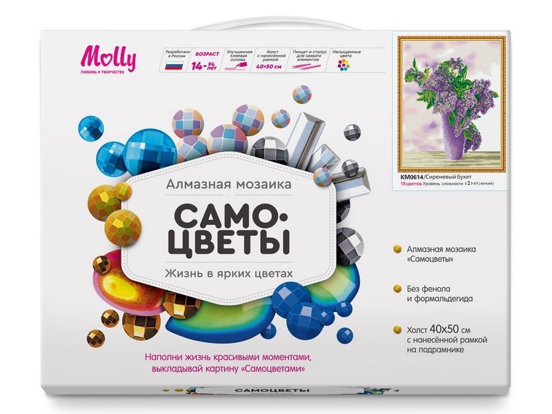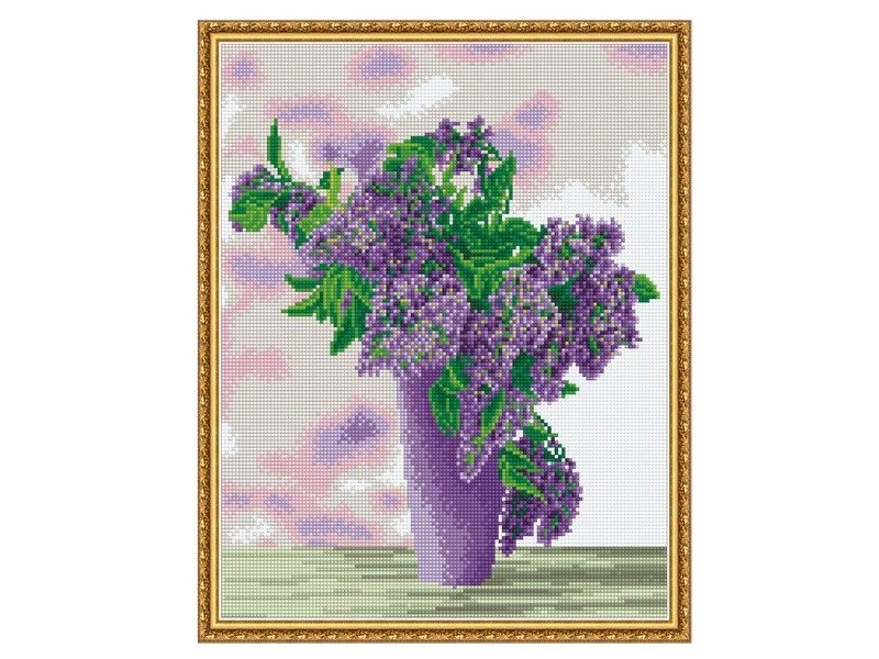 Алмазная мозаика с нанесенной рамкой 40х50 СИРЕНЕВЫЙ БУКЕТ (18 цветов)