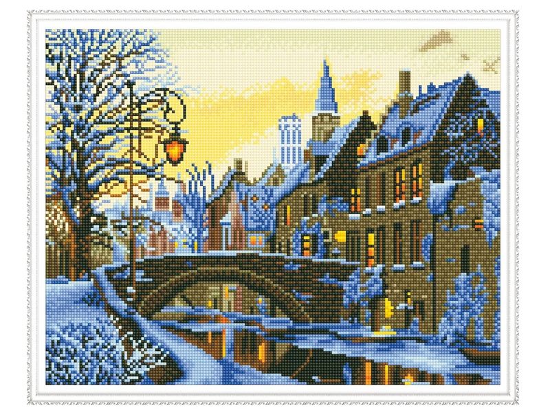 Алмазная мозаика с нанесенной рамкой 40х50 ЗИМНИЙ ВЕЧЕР (26 цветов)