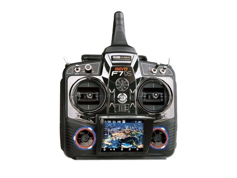 Имеет 5.8G высокочастотной передачи видеосигнала real time. Имеет возможность обновления прошивок через USB подключение к компьютеру и настройки мощности выходного сигнала, возможность беспроводной связи между двумя аппаратурами Devo F7 для передачи настроек и функции трейнера. Возможны сохранение в память аппаратуры до 15 моделей и настройки чувствительности гироскопа для более спокойных или же агрессивных полётов.