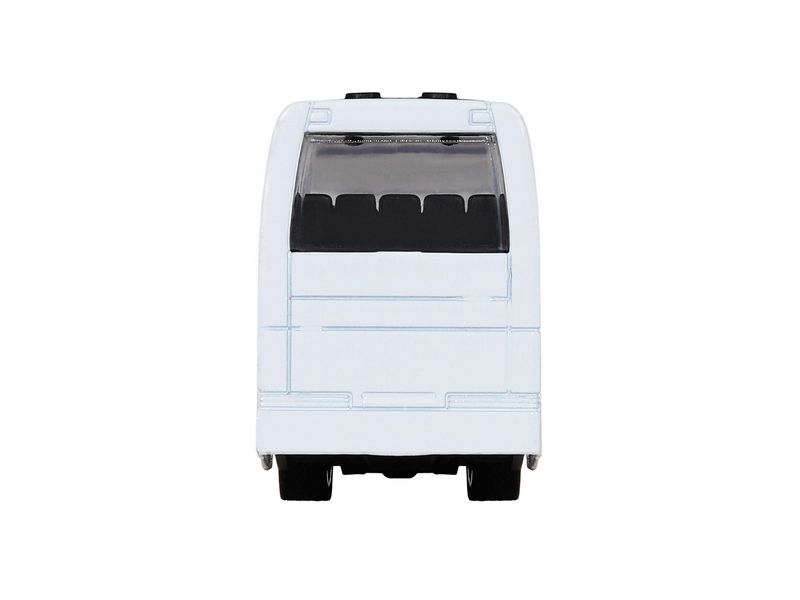 Вращающиеся колеса с резиновыми покрышками, сиденья в салоне, большие прозрачные окна, яркая раскраска на кузове - всё как у настоящего автобуса.