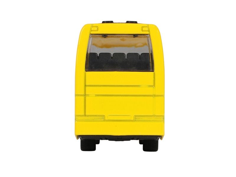 Вращающиеся колеса с резиновыми покрышками, сиденья в салоне, большие прозрачные окна, яркая раскраска на кузове - всё как у настоящего автобуса.