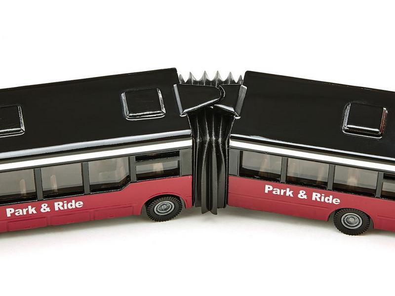 Автобусы с гармошкой по центру вмещают в свой салон намного больше пассажиров, поэтому их так много на улицах городов. Эта игрушка в точности повторяет распространённый вид городского транспорта и даже его характерную эластичную деталь на корпусе.