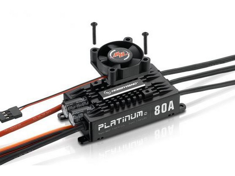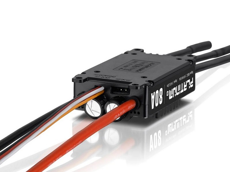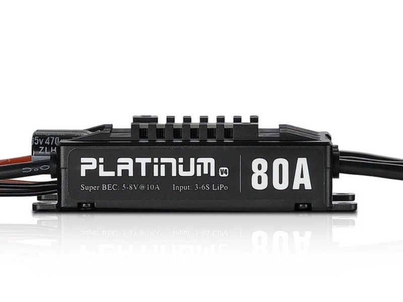 Регулятор оборотов HobbyWing HW Platinum Pro 80A V4 (Platinum 80A-V4) для радиоуправляемых вертолетов 450-500 класса (основные лопасти 380-470 мм), 3D-самолетов .70 размера и EDF с импеллером до 75 мм.