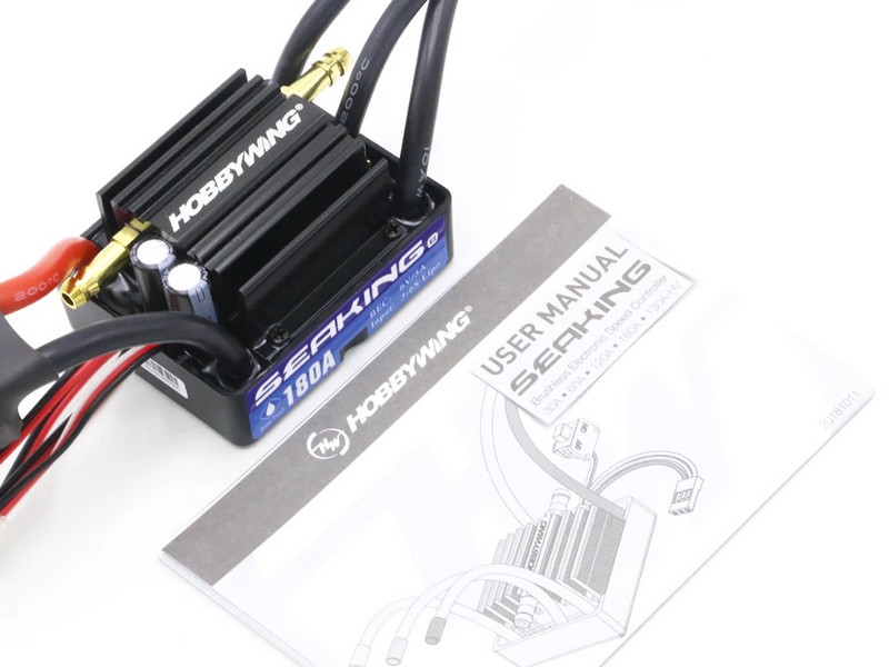 Влагозащищённый регулятор оборотов HobbyWing Seaking V3 180A (Seaking-180A-V3) судомодельный с водяным охлаждением для бесколлекторных моторов. Предназначен для моделей лодок и катеров длиной до 130 см.
