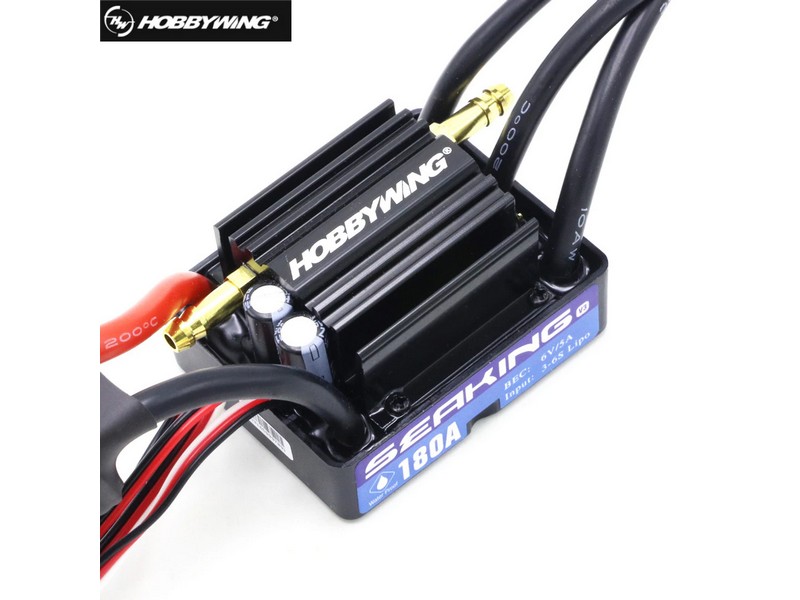 Влагозащищённый регулятор оборотов HobbyWing Seaking V3 180A (Seaking-180A-V3) судомодельный с водяным охлаждением для бесколлекторных моторов. Предназначен для моделей лодок и катеров длиной до 130 см.