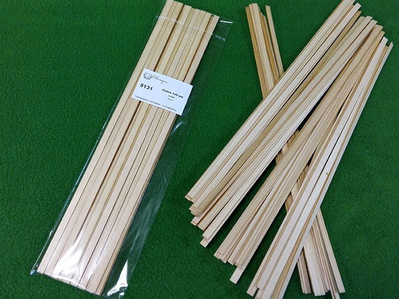 Деревянные рейки 1х6 мм, длина 300 мм, сосна, 50 шт