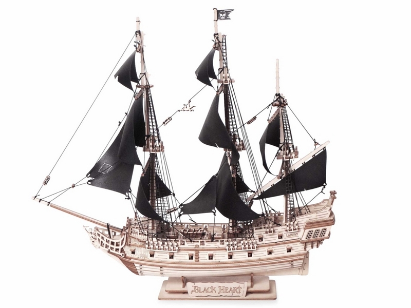 Корабль "Черное сердце" станет отличным подарком для любителей морских путешествий. Деревянный корабль с парусами, тросами, пушками и мачтами выглядит как настоящий! В комплекте есть все, что нужно для сборки.