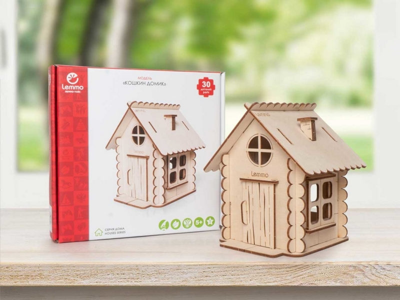 Деревянный 3D конструктор Lemmo "Кошкин домик". Детали конструктора выполнены из качественной древесины. Набор укомплектован наждачной бумагой. В результате сборки получается полноценный красивый домик. После сборки при желании можно раскрасить акриловыми и гуашевыми красками.