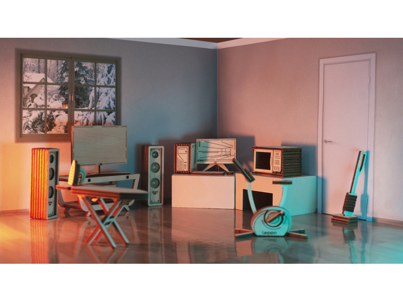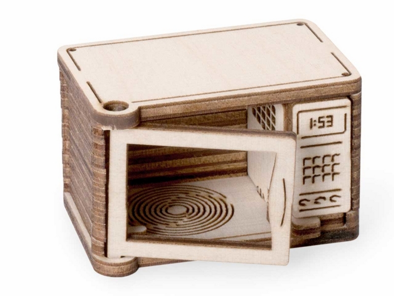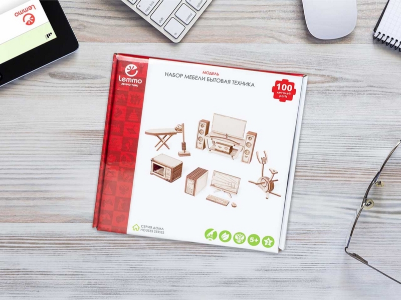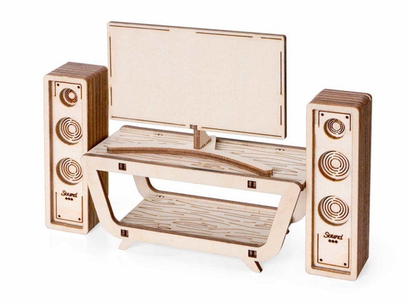 Деревянный 3D конструктор Lemmo Набор мебели "Бытовая техника". Детали конструктора выполнены из качественной древесины. Набор укомплектован наждачной бумагой. В результате сборки получается большой набор бытовой техники с подвижными элементами, в который входят колонки, телевизор, столик, пылесос, тренажёр, микроволновка, монитор, клавиатура, мышка, системный блок, музыкальный центр, гладильная доска, утюг. Крутятся педали тренажёра, вращается щётка пылесоса, открывается дверца микроволновки, раскладывается гладильная доска. При желании можно раскрасить акриловыми красками.
