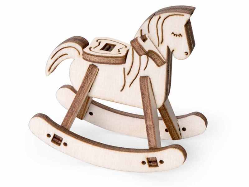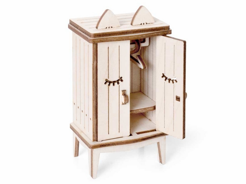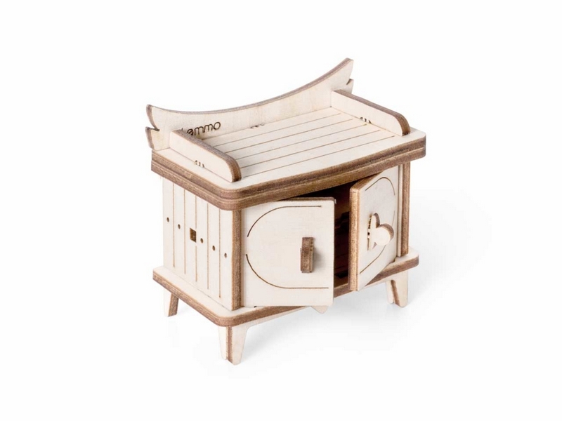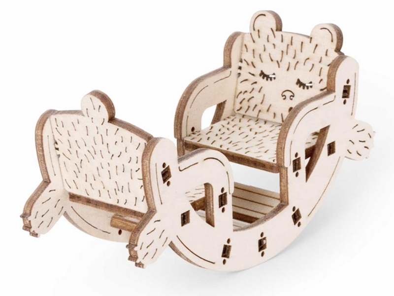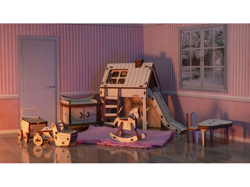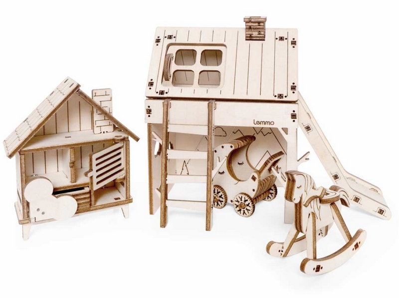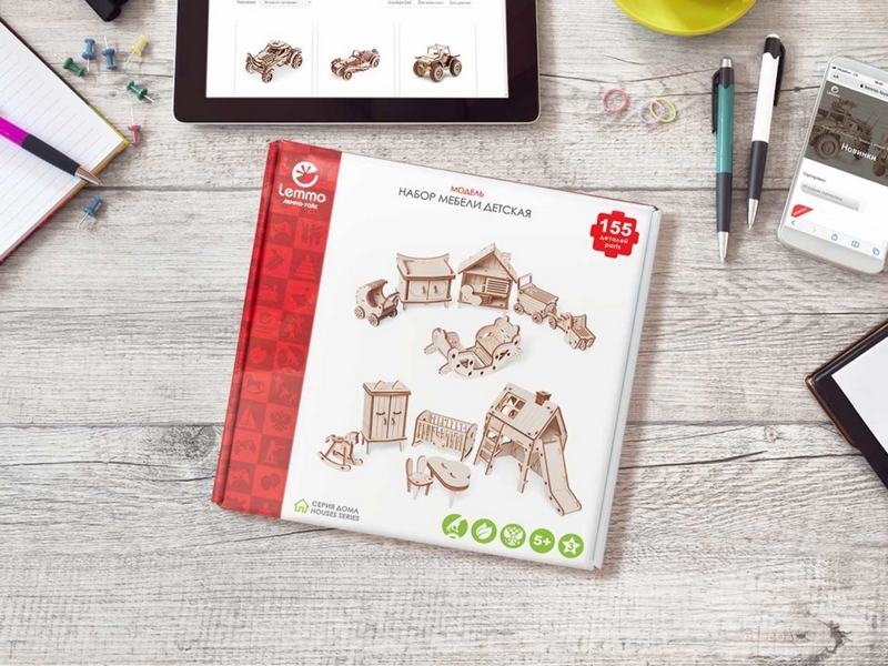 Деревянный 3D конструктор Lemmo Набор мебели "Детская". Детали конструктора выполнены из качественной древесины. Набор укомплектован наждачной бумагой. В результате сборки получается большой набор мебели для детской комнаты с подвижными элементами, в который входят горка, шкаф, комод, стеллаж, кроватка, коляска, столик, стульчик, коняшка, качель-мишка, беговел с прицепом. Открываются дверцы шкафчиков, крутятся колёса. При желании можно раскрасить акриловыми красками.