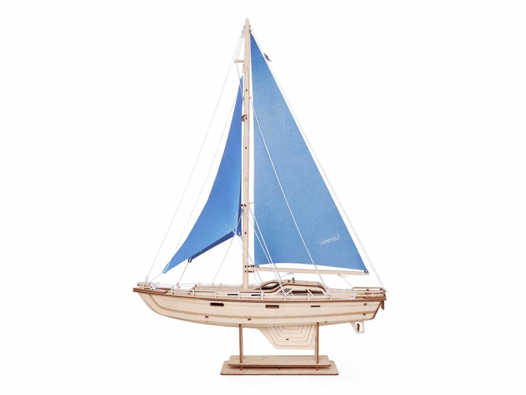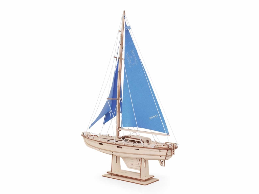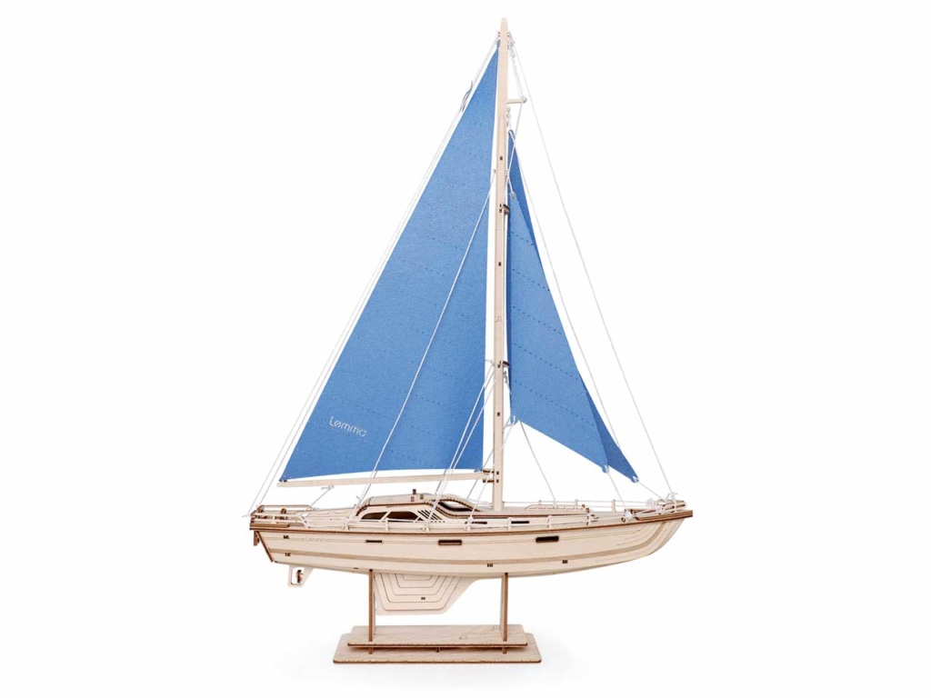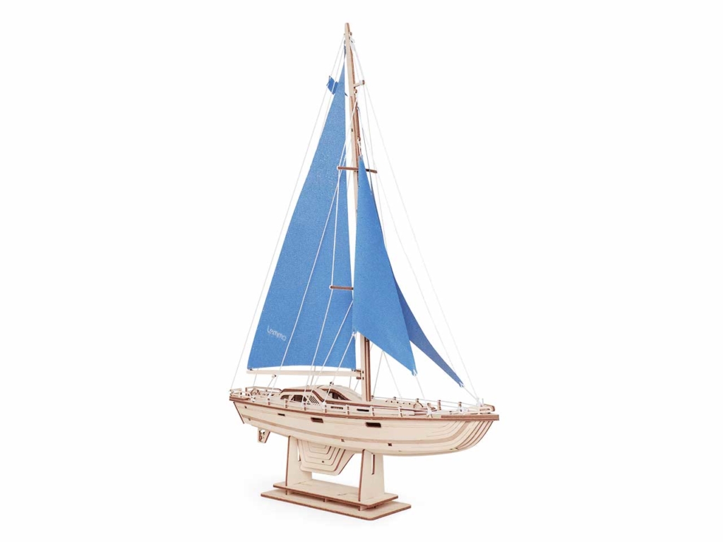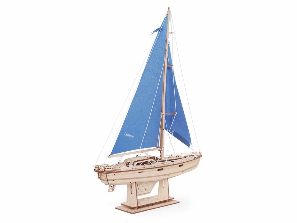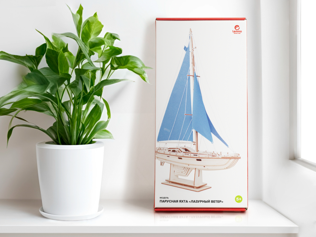 Деревянный 3D конструктор Lemmo Парусная яхта "Лазурный ветер". Детали конструктора выполнены из качественной древесины. Набор укомплектован клеем и наждачной бумагой. В результате сборки получается полноценная красивая игрушка с подвижными элементами. У собранной модели вращаются штурвал и винт, поднимается и спускается флаг, двигается гик, высокая детализация, три тканевых паруса, 15 метров канатной нити. Модель можно раскрасить акриловыми красками.