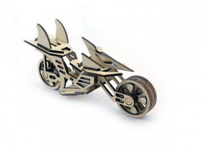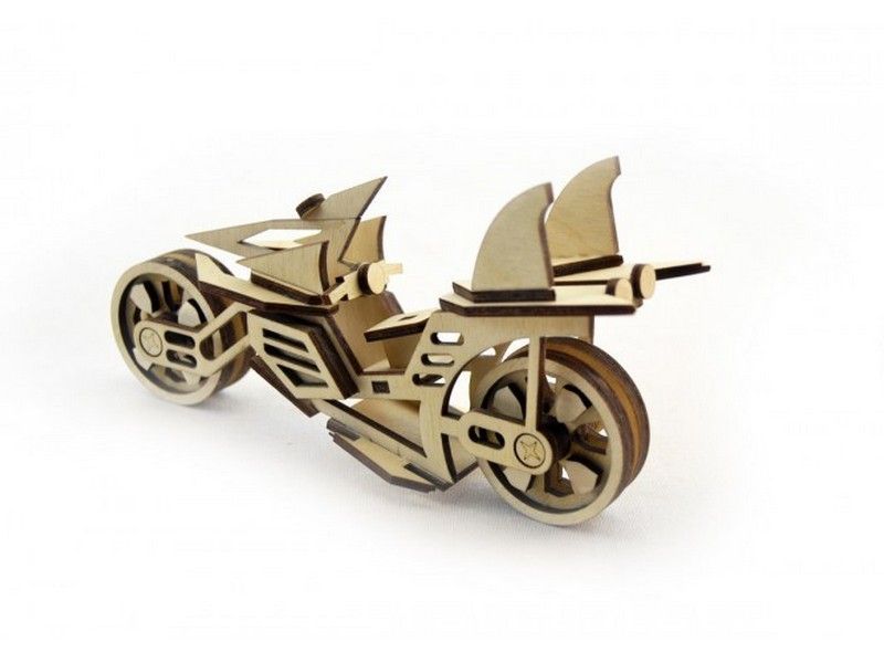 Деревянный 3D конструктор Lemmo Мотоцикл "Фантом". Детали конструктора выполнены из качественной древесины. Набор укомплектован клеем ПВА и наждачной бумагой. В результате сборки получается полноценная красивая игрушка с подвижными элементами. После сборки при желании можно раскрасить акриловыми и гуашевыми красками.