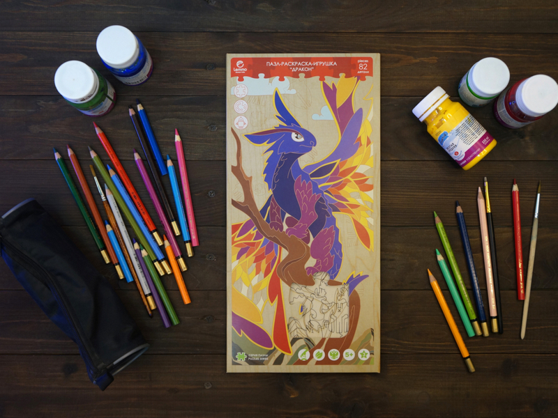 деревянный пазл-раскраска-игрушка "Дракон"