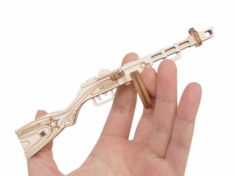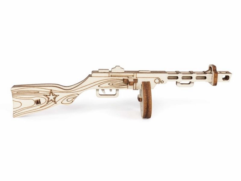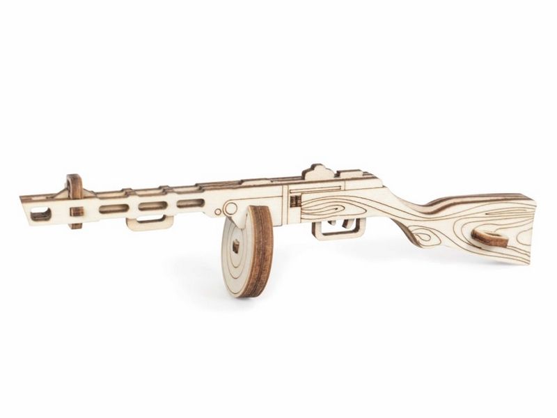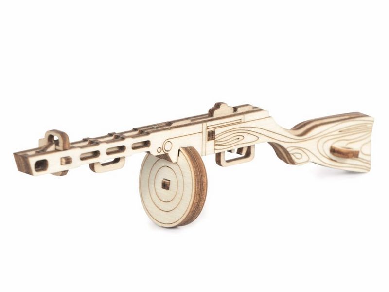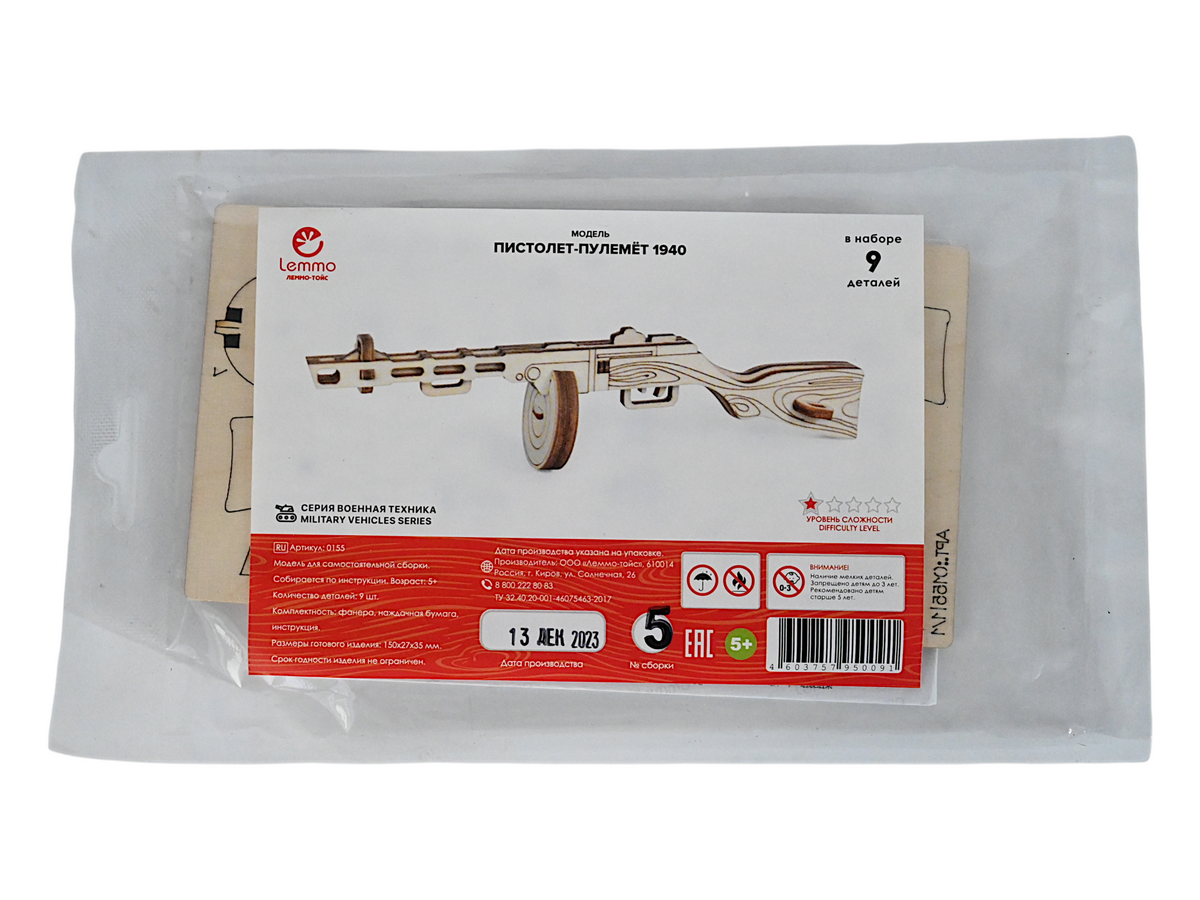 Деревянный 3D конструктор Lemmo Пистолет-пулемёт 1940. Детали конструктора выполнены из качественной древесины. Набор укомплектован наждачной бумагой. В результате сборки получается полноценная красивая игрушка. После сборки при желании можно раскрасить акриловыми и гуашевыми красками.