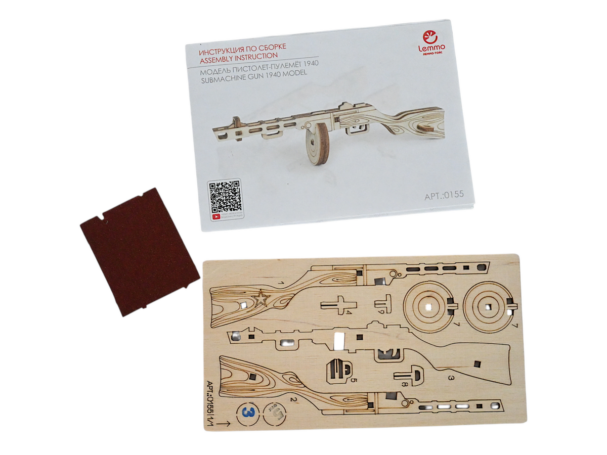 Деревянный конструктор Lemmo ПИСТОЛЕТ-ПУЛЕМЕТ 1940, 9 деталей