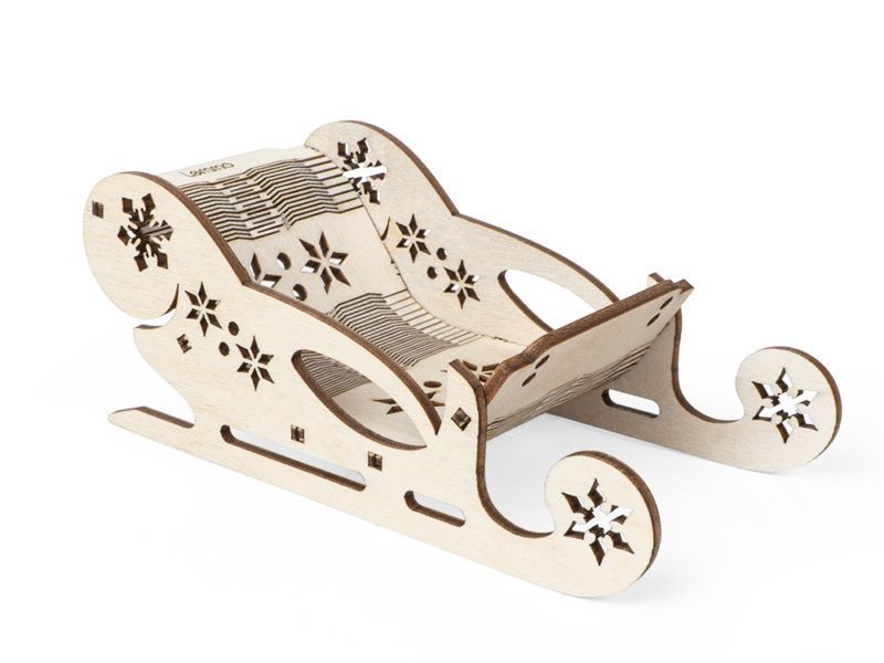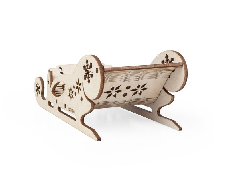 Деревянный 3D конструктор Lemmo Рождественские сани. Детали конструктора выполнены из качественной древесины. Набор укомплектован наждачной бумагой. После сборки при желании можно раскрасить акриловыми и гуашевыми красками, использовать технику «Декупаж» и другие виды декоративного творчества.