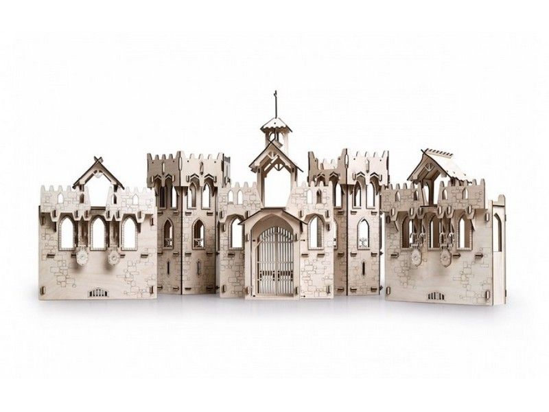 Набор состоит из пяти основных элементов: двух башен, центральной стены с главными воротами и двух защитных стен со стрелковыми вышками. Основная часть всех конструкций собирается без использования клея. Клеятся только декоративные накладки на окна. Все основные элементы замка не имеют между собой соединений, что позволяет самостоятельно расположить их между собой и изменить общую композицию на свое усмотрение.