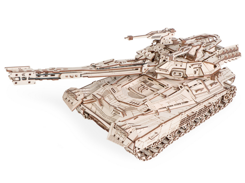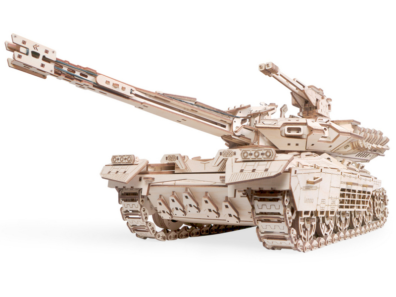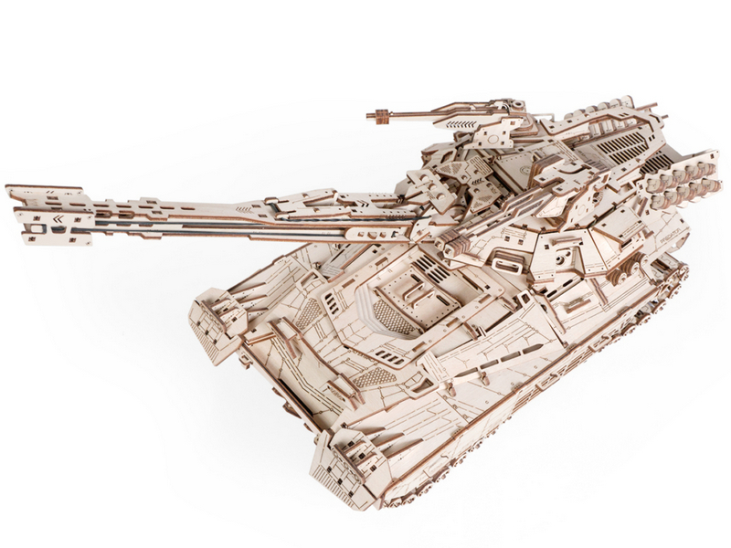 Набор "Танк "Хищник" станет отличным подарком для любителей техники. Этот набор впечатлит не только ребенка, но и любого взрослого. У собранной модели вращаются башня, пулемёты, колёса и гусеницы. Подвеска с амортизацией. Поднимается, фиксируется и опускается пушка. Открываются люки. Пушка заряжается и стреляет снарядами из фанеры. Дальность стрельбы до 10 м.