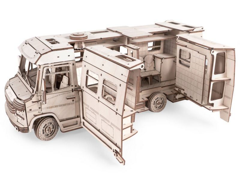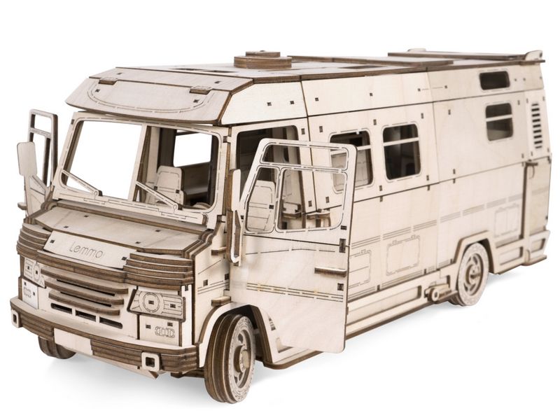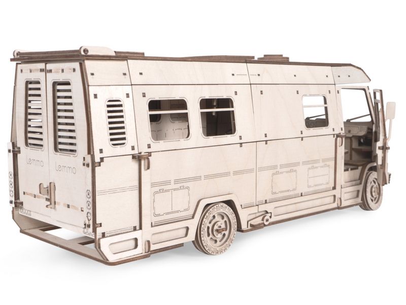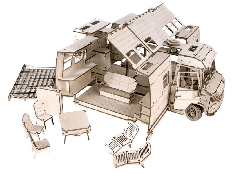 Деревянный 3D конструктор Lemmo Трейлер "Пикник". Все детали выполнены из качественной древесины. Набор укомплектован клеем ПВА и наждачной бумагой. После сборки при желании можно раскрасить акриловыми и гуашевыми красками.