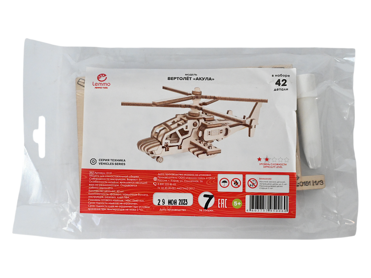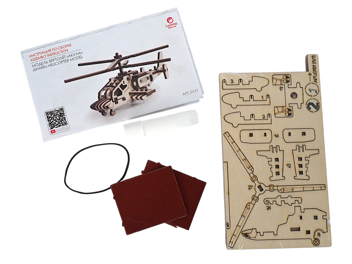 Деревянный конструктор Lemmo Вертолет "Акула", 42 детали