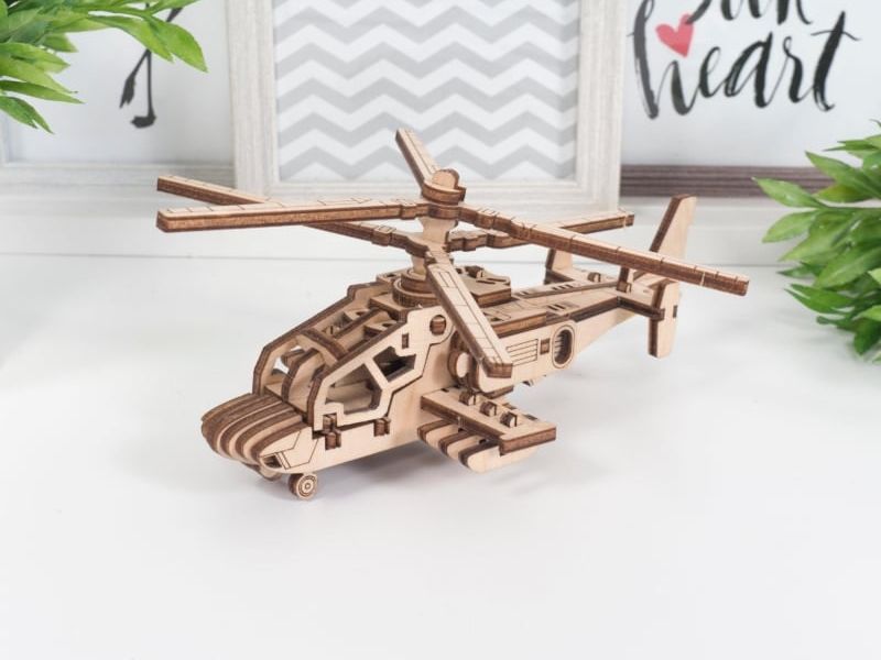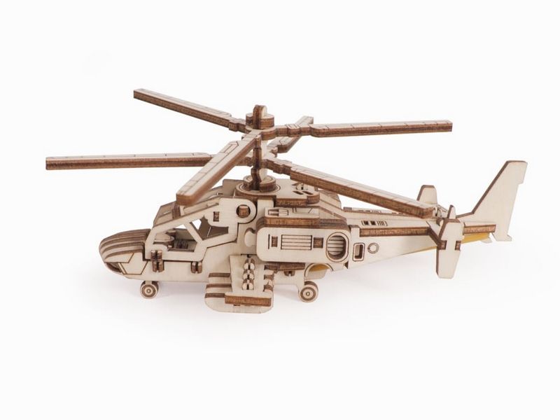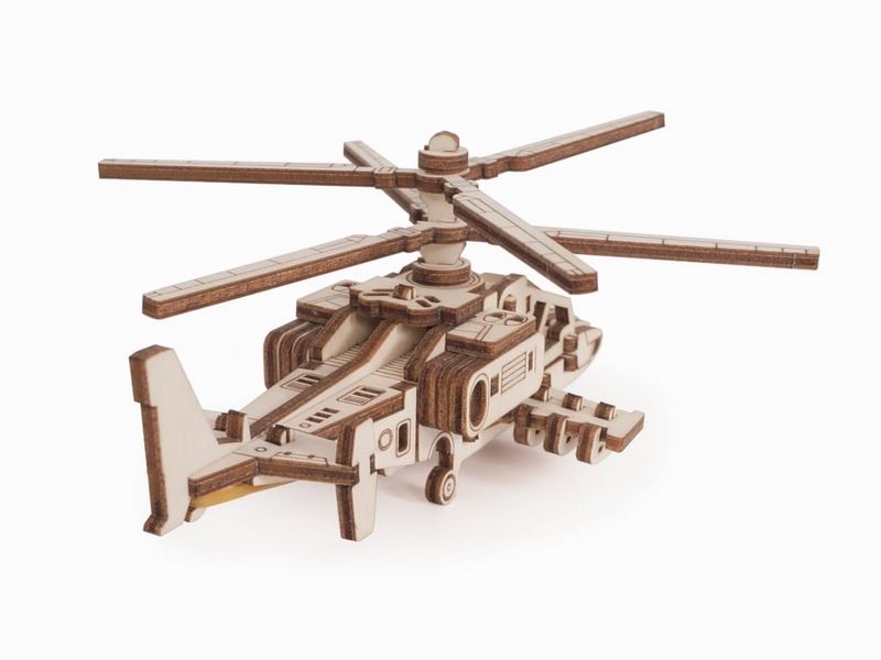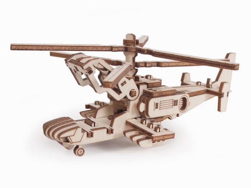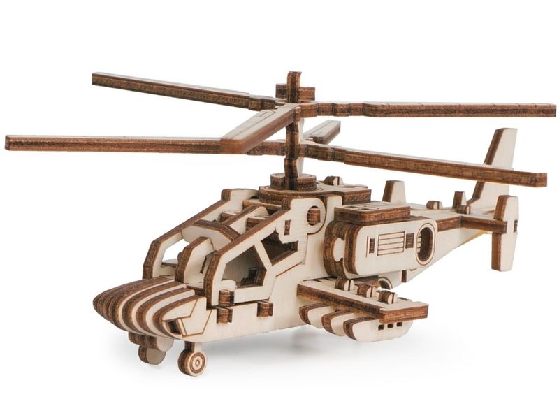 Деревянный 3D конструктор Lemmo Вертолет "Акула". Детали конструктора выполнены из качественной древесины. Набор укомплектован клеем ПВА и наждачной бумагой. В результате сборки получается полноценная красивая игрушка с подвижными элементами. После сборки при желании можно раскрасить акриловыми и гуашевыми красками.