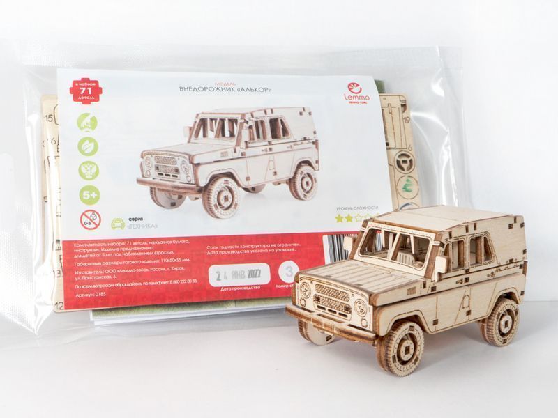 Деревянный конструктор Lemmo Внедорожник "Алькор", 71 деталь