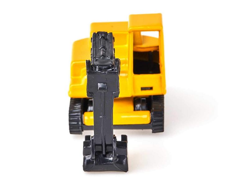 Экскаватор – это основной тип землеройных машин, оснащенных ковшом, используемых для разработки грунтов и погрузки сыпучих материалов. Модель изготовлена в масштабе 1:87 и имеет строительный - черно-желтый цвет. Корпус экскаватора выполнен из металла, стрела, ковш и гусеничная лента - из пластика. Гусеницы экскаватора неподвижны, но снизу предусмотрены 4 маленьких колеса для перемещения экскаватора, модельку можно катать.