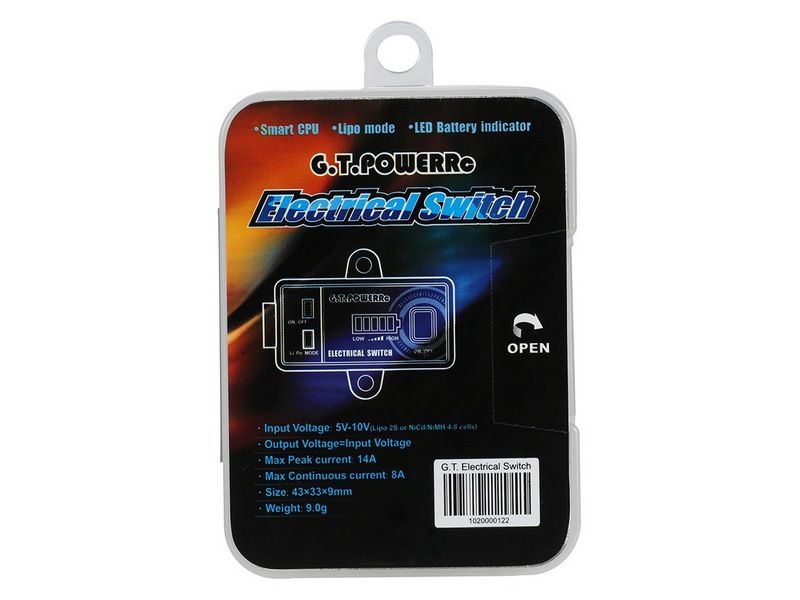 Электронный выключатель G.T.Power (14А/5В-10В) для радиоуправляемых моделей самолетов, вертолетов, автомобилей.Прост в использовании, имеет небольшой объем, поэтому его удобно носить с …