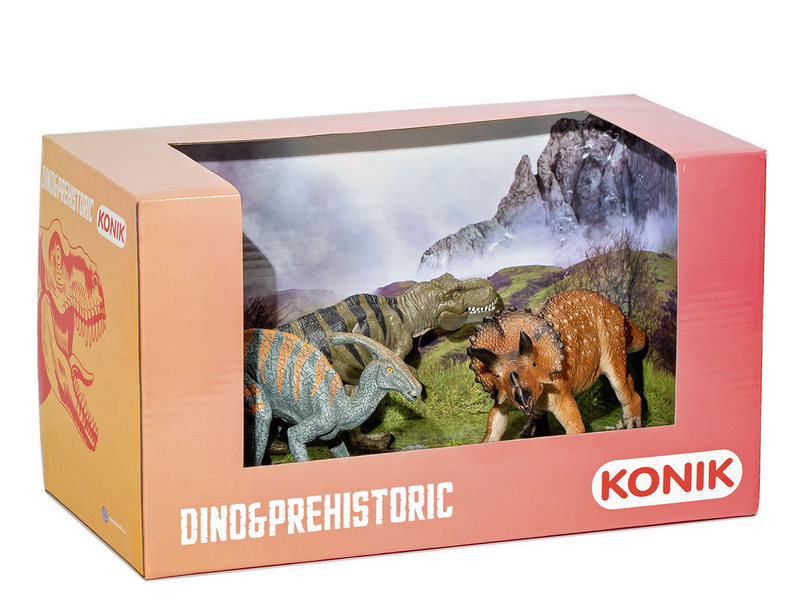 Фигурка KONIK набор динозавров: тираннозавр, трицератопс, паразауролоф